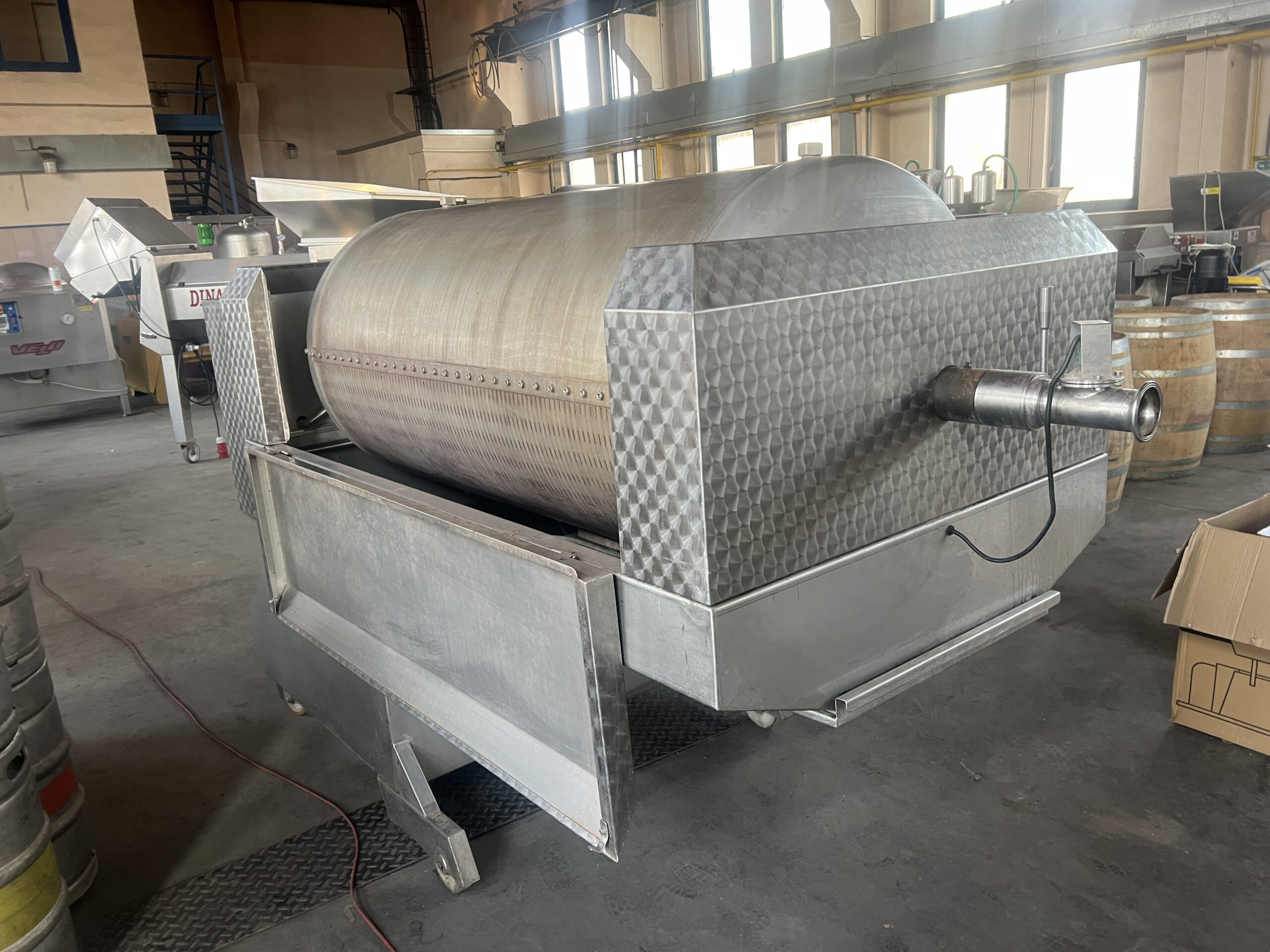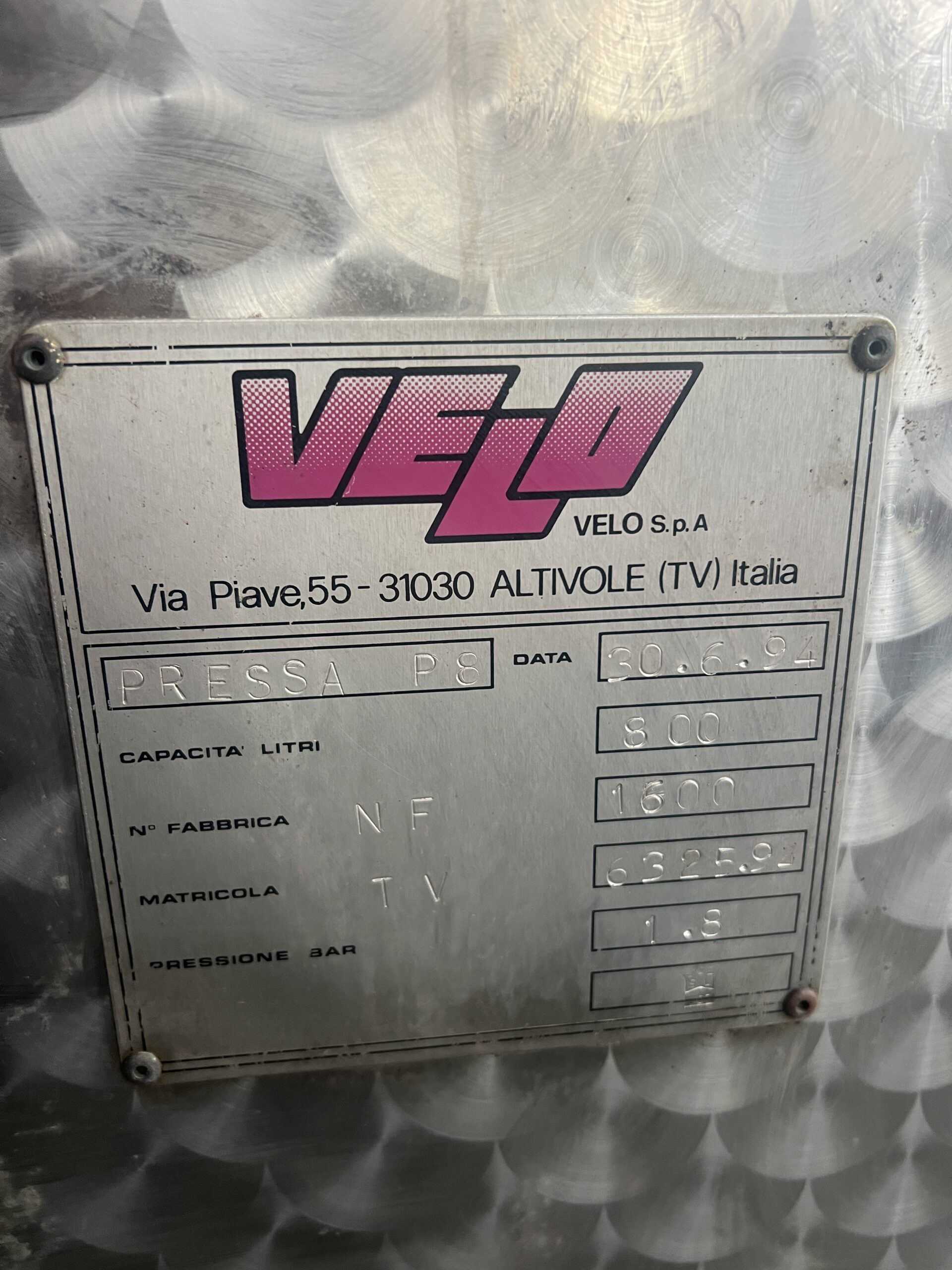 Italský pneumatický polouzavřený lis na hrozny od renomovaného výrobce VELO S.p.A. (Altivole, Itálie) v dobrém stavu. Lis je servisovaný, před třemi lety vyměněna nová membrána. Osazený pojezdovými kolečky – skladný a dobře manipulovatelný, ideální pro menší vinařství.